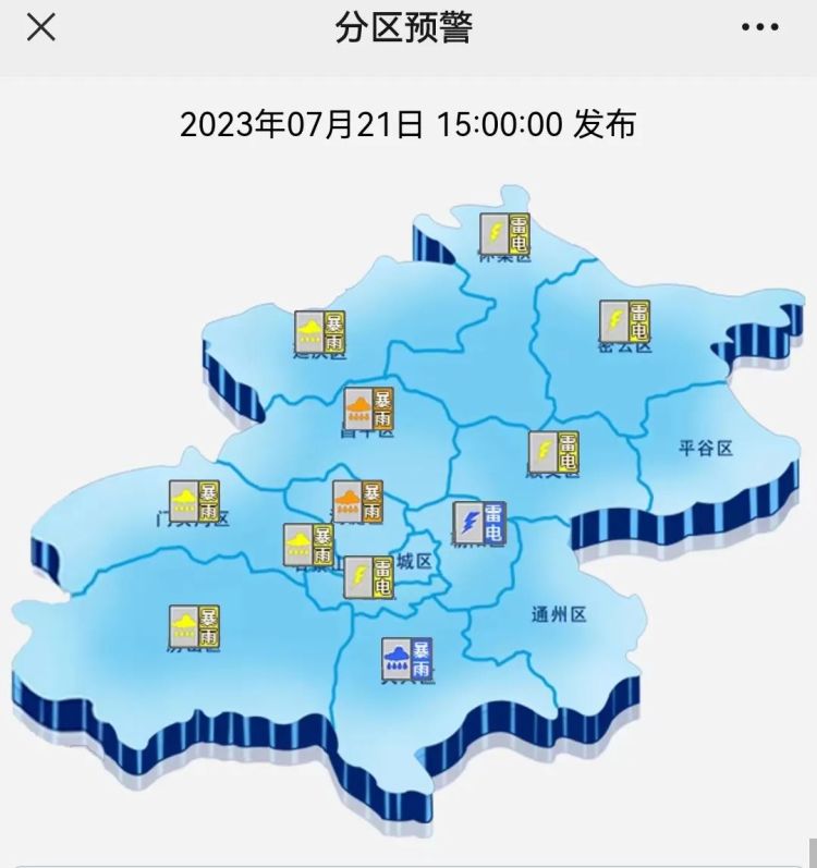 截至今日15时,昌平、海淀已升级发布暴雨橙色预警信号 ,请注意防范。