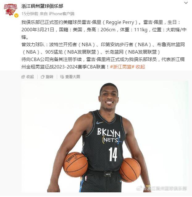 央视网消息:北京时间7月21日,浙江男篮官宣签约美籍球员雷吉-佩里,身高2米06的雷吉-佩里将作为球队的外援出战2023-2024赛季CBA联赛。