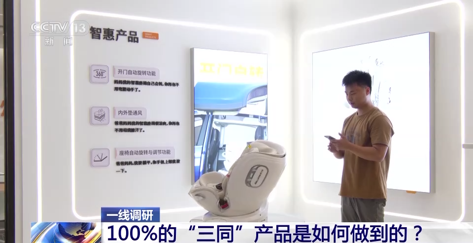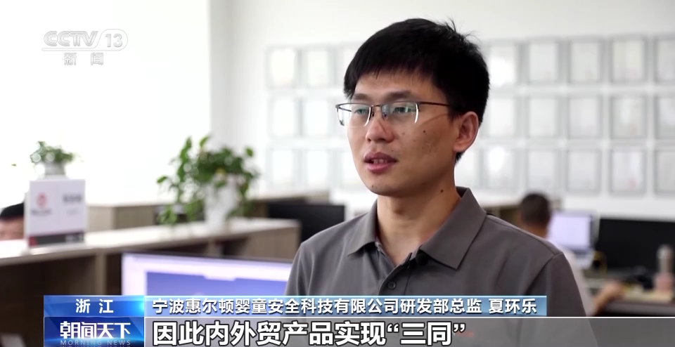 宁波惠尔顿婴童安全科技有限公司总经理 陈振超:我们首先解决了“同标”的难题。“同质”和“同线”也就不是什么问题了,因为我们内外贸产品所有零配件都是统一的,生产的工序也一样。就这样我们实现了全线的“三同”。