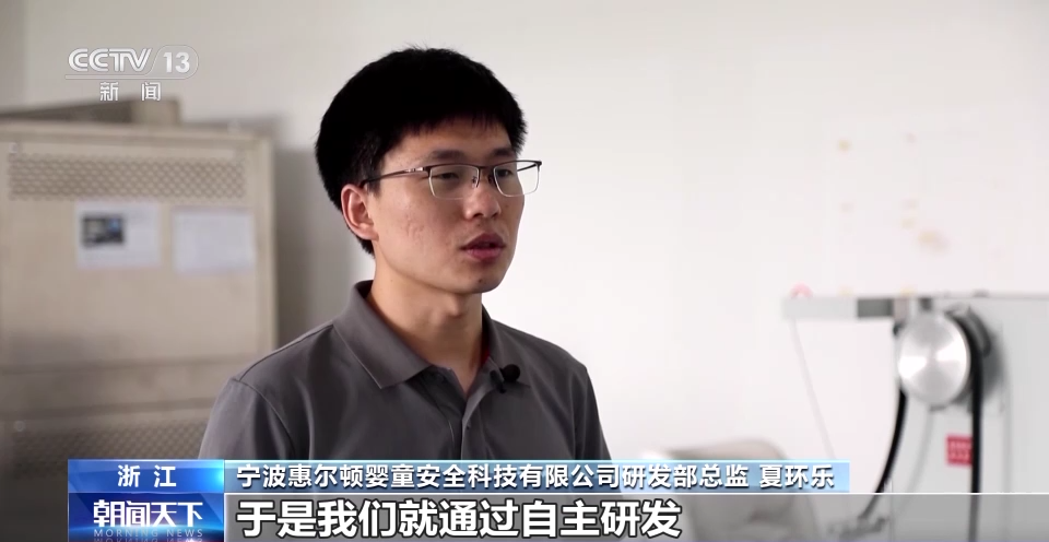 宁波惠尔顿婴童安全科技有限公司研发部总监夏环乐:比如产品测试要求方面,国内的现行标准不要求侧碰,但是欧洲就要求侧碰试验。而且两种测试所使用的假人、传感器也不相同;于是我们就通过自主研发,采用侧面防撞缓冲机构,突破了不同测试假人和不同条件的限制,使我们的产品可以同时满足两种标准的要求。