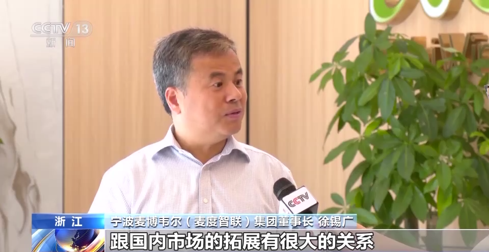 宁波麦博韦尔(麦度智联)集团董事长 徐锡广:我们内销的占比这块提升还是蛮明显的,从去年10%左右我们现在到20%多了,尤其是今年整个销售形势的稳定,跟国内市场的拓展有很大的关系。