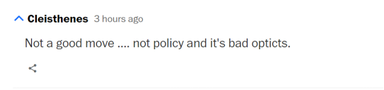 有网友认为,“并非好的举动……不符合政策,眼光很差”。↓