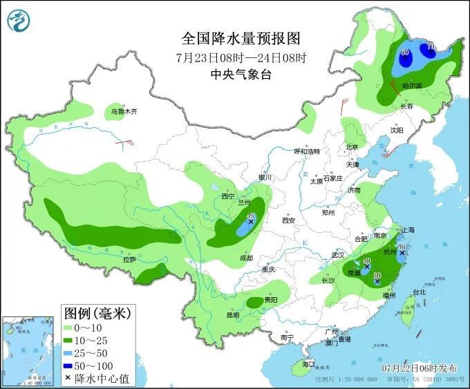 23日,黑龙江、吉林西部、西北地区东南部、西藏中部、江南中东部、川西高原北部等地部分地区有中到大雨,其中,黑龙江中西部等地部分地区有暴雨。