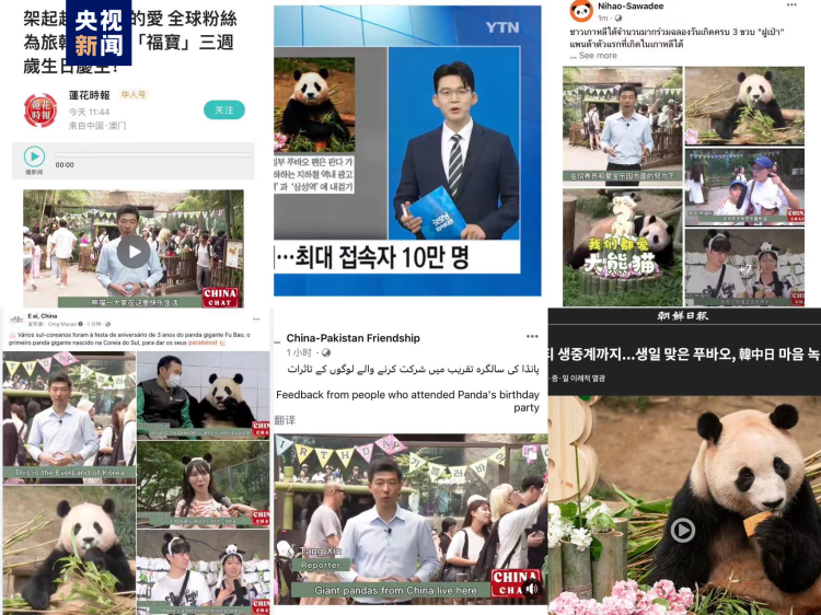 总台亚太总站联袂央视网、央视频客户端、央视新闻客户端以及微博、微信、抖音、优酷等各平台联合推出福宝生日会全网慢直播。“福宝”系列报道话题及总浏览量超1亿次。其中,移动直播《生日快乐,福宝!》,12小时内播放量超2025万次,互动量超340万次,并落地英国Al-Hiwar卫星电视频道、巴西记录新闻频道、印度尼西亚新闻台、台湾电视台等主流媒体。