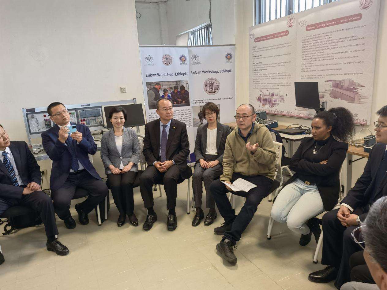 鲁班工坊教师江绛向记者介绍,鲁班工坊由天津职业技术师范大学与埃塞联邦职业技术培训学院共同建立,于2021年4月28日在非盟总部所在地、埃塞首都亚的斯亚贝巴揭牌启运,定位于人工智能领域,服务埃塞联邦职业技术培训学院的制造技术、电子与通信技术、电气与控制技术3个本科专业和电气与控制技术1个研究生专业,聚焦工业传感器、机电一体化、工业控制、工业机器人4个技术方向,采用工程实践创新项目(EPIP)教学模式开展以本科、硕士研究生和博士研究生为主的教育教学活动,向非洲青年学生和企业员工提供学历教育和技术培训。鲁班工坊被非盟总部确立为面向整个非洲国家的高素质技能人才培训中心,与东非职教一体化(EASTRIP)世行项目中心签署协议为东非国家培养高水平职教师资。