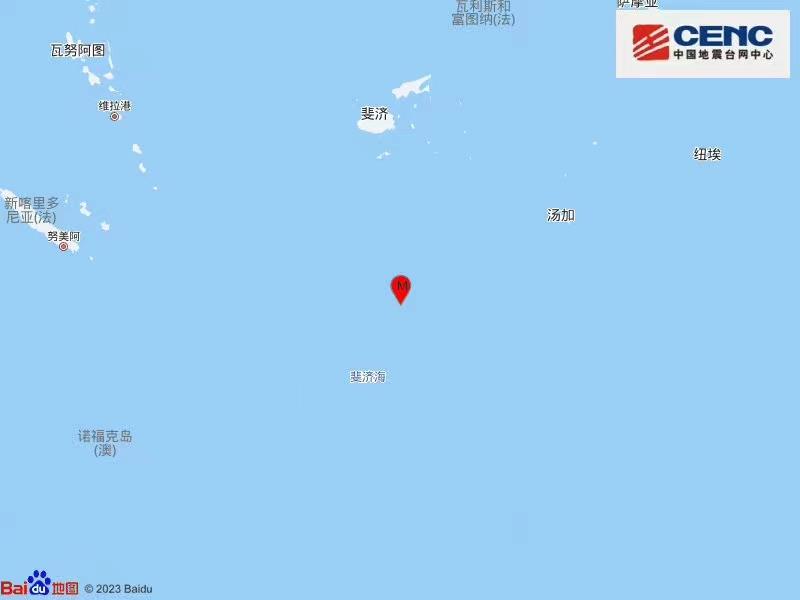 斐济群岛以南海域发生6.0级地震 震源深度550千米