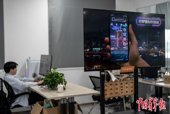 6月26日,成都天府新区,“蓉宝”机器人的研发公司摆放着演示MR技术的屏幕。