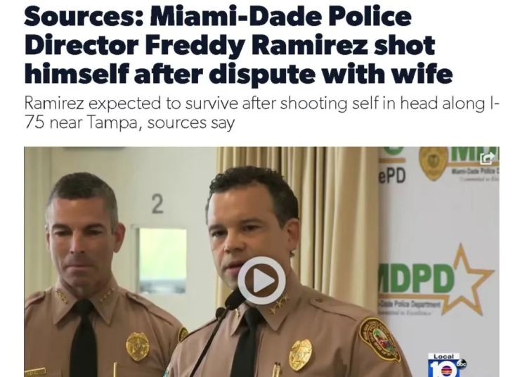 当地媒体称,中枪的这名警察局长名叫阿尔弗雷多·拉米雷兹,今年57岁,执掌着美国佛罗里达州人口大县迈阿密-戴德县的警察局。