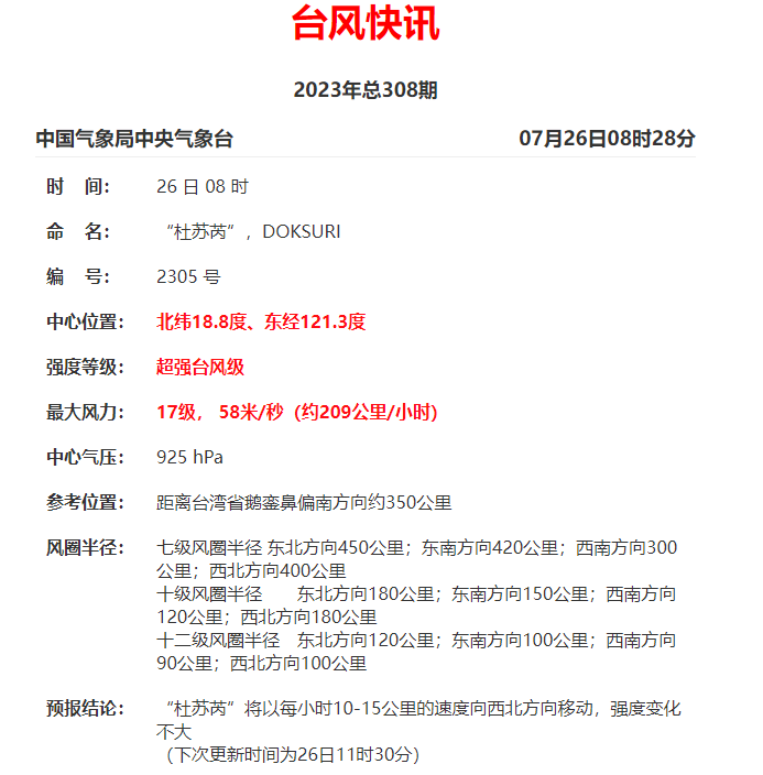 7月26日起至台风预警解除前,全市学校停学、校外培训机构停训。
