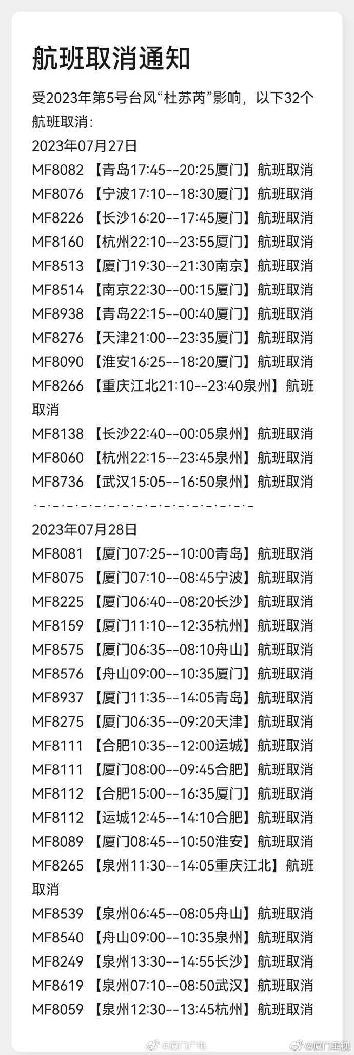 思明区和湖里区校外培训机构规范发展工作领导小组办公室7月25日下发通知:即日起,中小学、幼儿园暂停夏令营、社会实践等集体活动,校园暑托班,校外培训机构(含少年宫)等线下培训一律暂停,直至台风预警取消。