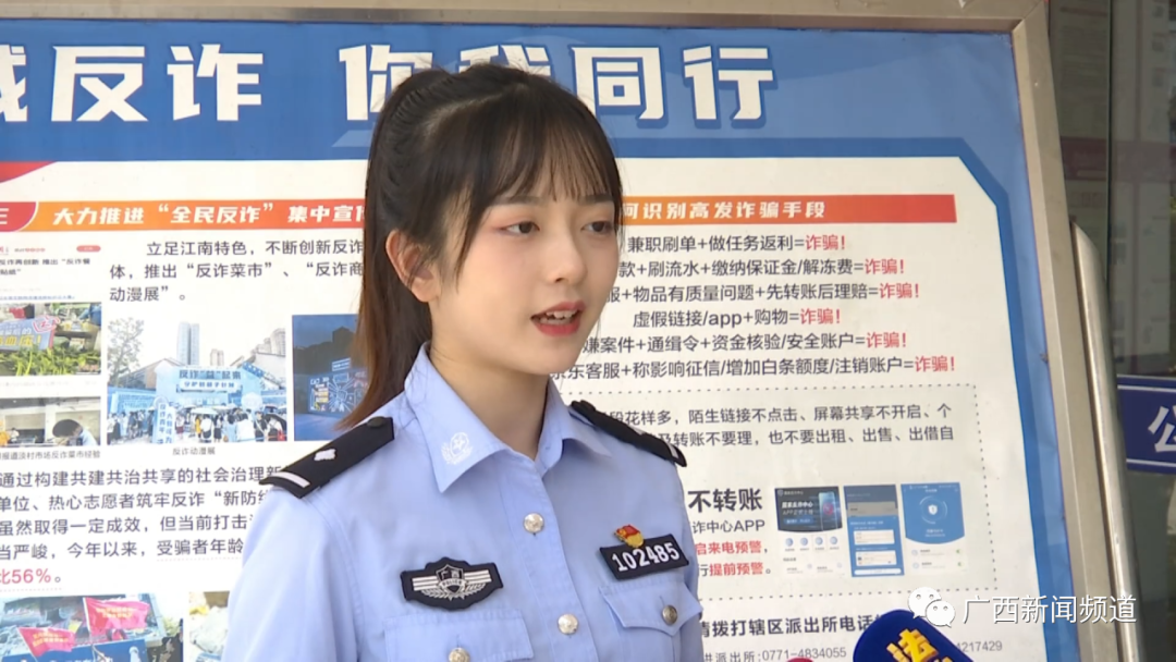 南宁市公安局江南分局反诈中心民警 刘睿:诈骗分子冒充国内公检法、政府机关工作人员,或者冒充国外当地警察、移民、海关等执法机关人员,声称留学生涉嫌洗钱、偷渡、走私等严重犯罪,正在对其进行调查,请其严格保密不得告诉其他任何人。