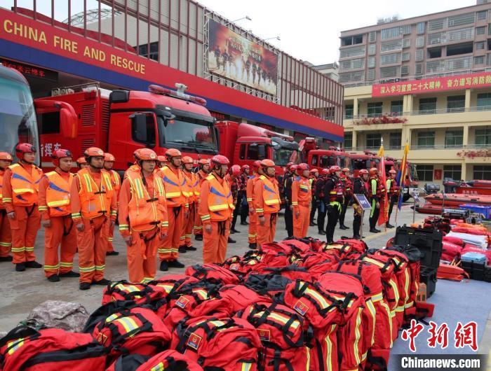 梅州市消防救援支队派出5支抢险救灾突击队,前往台风防御5个高风险县区(平远、大埔、丰顺、蕉岭、五华)进行蹲点助勤。