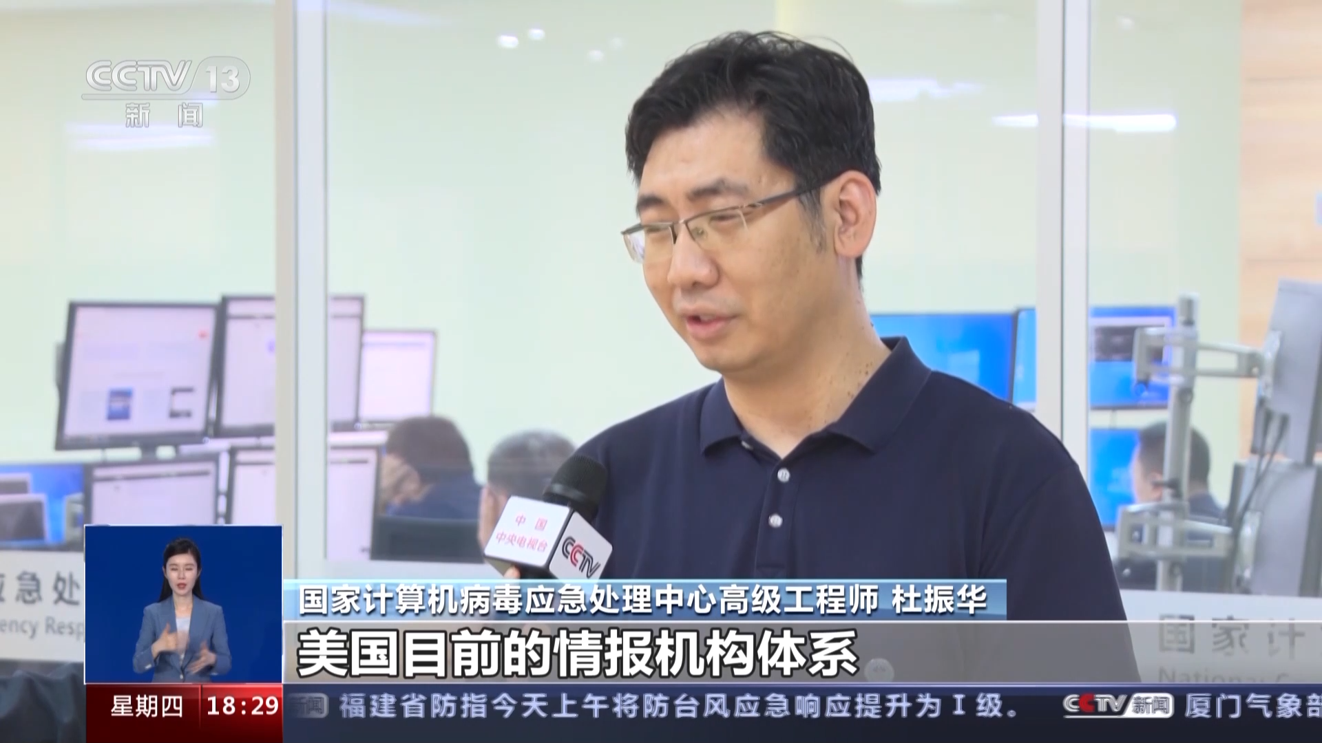 国家计算机病毒应急处理中心高级工程师 杜振华:美国目前的情报机构体系其中主要的情报机构有18个。除了中央情报局和国家安全局外,隶属于美国国防部的国防情报局、国家地理空间情报局和国家侦察局等都有很强的军事、地理、地质情报信息的分析能力,所以此次攻击,我们不排除有多个情报机构合作实施的这种可能性。