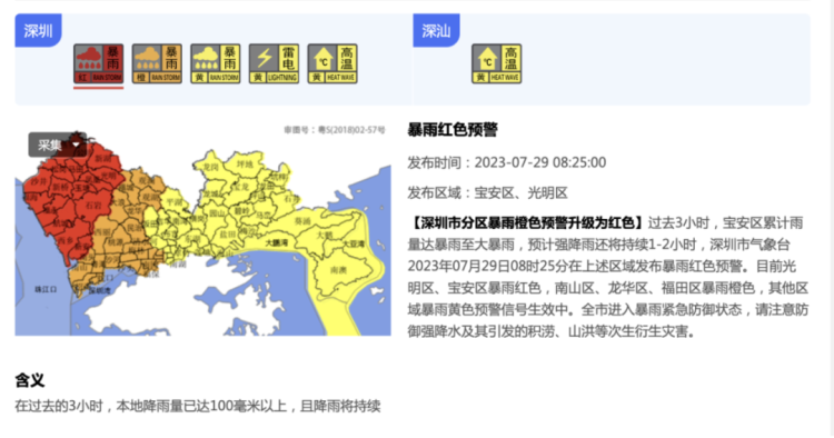 深圳市分区暴雨橙色预警 升级为红色 深圳市升级分区暴雨橙色预警