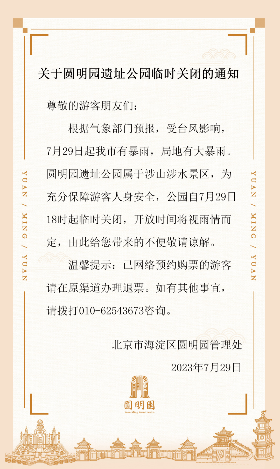 圆明园遗址公园临时关闭