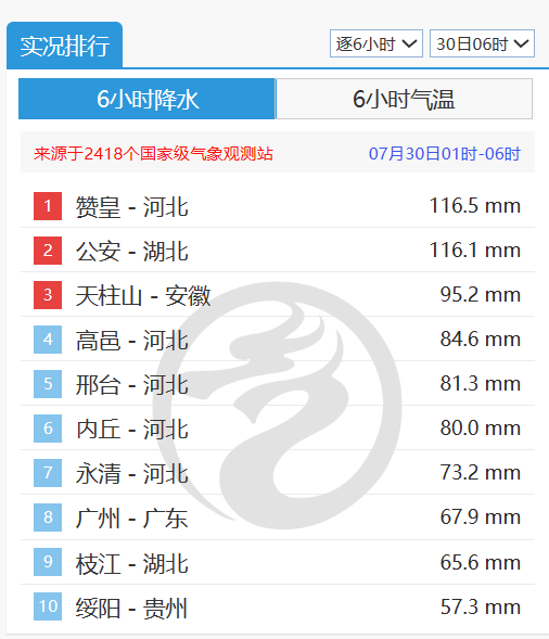 在全国降水榜前十中