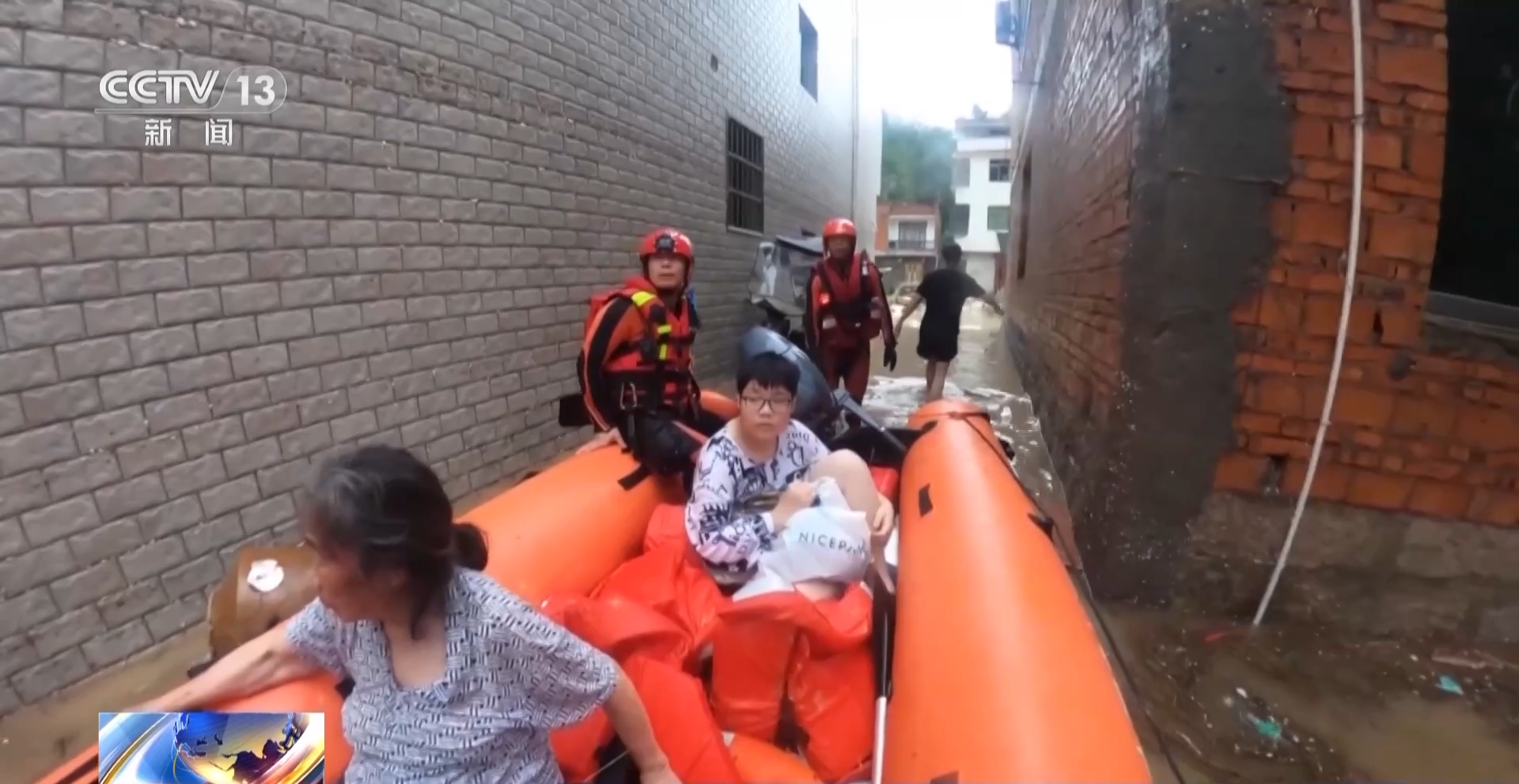 救援人员赶到城澳街村后发现,积水淹没了公路,只能乘坐冲锋舟进村展开搜救工作。同时,救援人员携带吸水泵及多套设备,进村后打开排水口,清理堵塞物,加快积水排放。