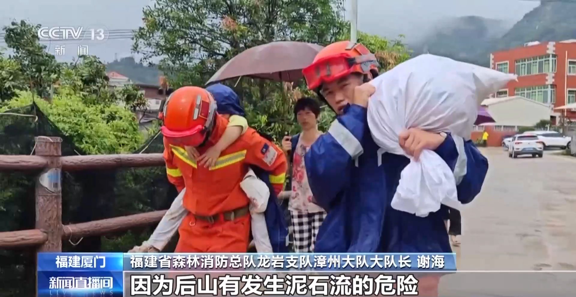 福建省森林消防总队龙岩支队漳州大队大队长 谢海:翔安区古宅村因为后山有发生泥石流的危险,在村干部的带领下,挨家挨户转移好群众,确保每名群众都能够集中到一个比较安全的地方。