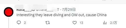 有网友在留言中道出了这张图隐藏的真相。这名网友称:“有趣的是,他们忽略了跳水和公开水域项目,因为中国在这些项目上表现出色。”