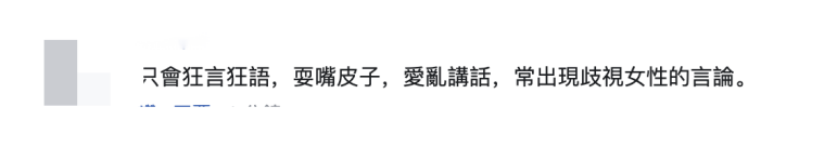 “只会狂言狂语,耍嘴皮子,爱乱讲话,常出现歧视女性的言论。”↓