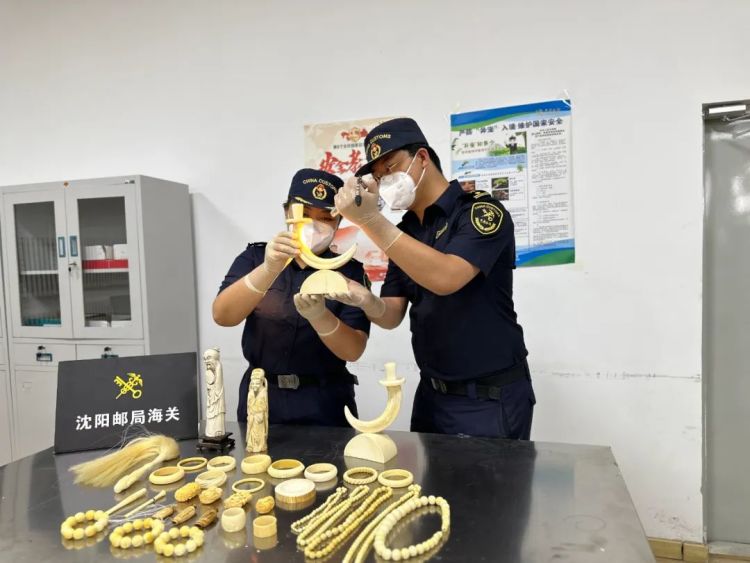 近日,沈阳海关所属沈阳邮局海关在国际进境邮件监管中,发现1件邮包机检图像存在异常。经开箱查验,发现内有35件用锡纸包裹严密的乳白色饰品,包括手镯、挂饰等。经专业机构鉴定,该批物品为象牙制品,共计4875克。现已按规定做进一步处置。