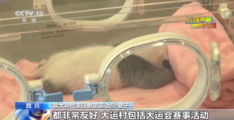 意大利代表团射箭运动员 爱子:我从来没有见过这么小的大熊猫,它成年后会长得很高大,但现在这样实在是太可爱了,是我见过的最可爱的动物了!
