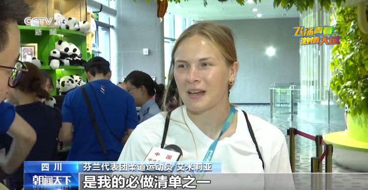 芬兰代表团柔道运动员 艾米莉亚:在芬兰我们也有大熊猫,都来自中国,所以来中国看大熊猫一直是我的梦想,是我成都之行的必做清单之一。