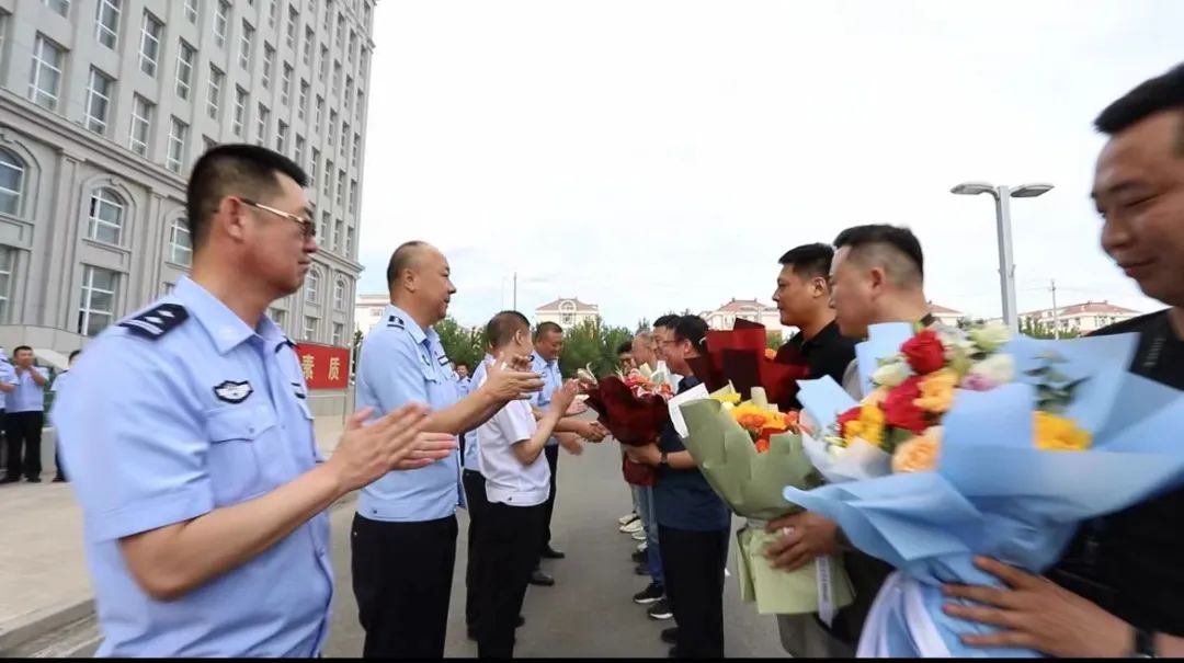 7月27日下午16时,伴随着一声声警笛,锡林浩特市公安局命案侦破专案组民警押解命案嫌疑人玛某凯旋归来,锡林浩特市公安局在局大楼前举行欢迎仪式,政府副市长、公安局党委书记、局长石凯龙对专案组送上鲜花表示祝贺,局党委班子成员、各部门警种民辅警、专案组全体成员参加。
