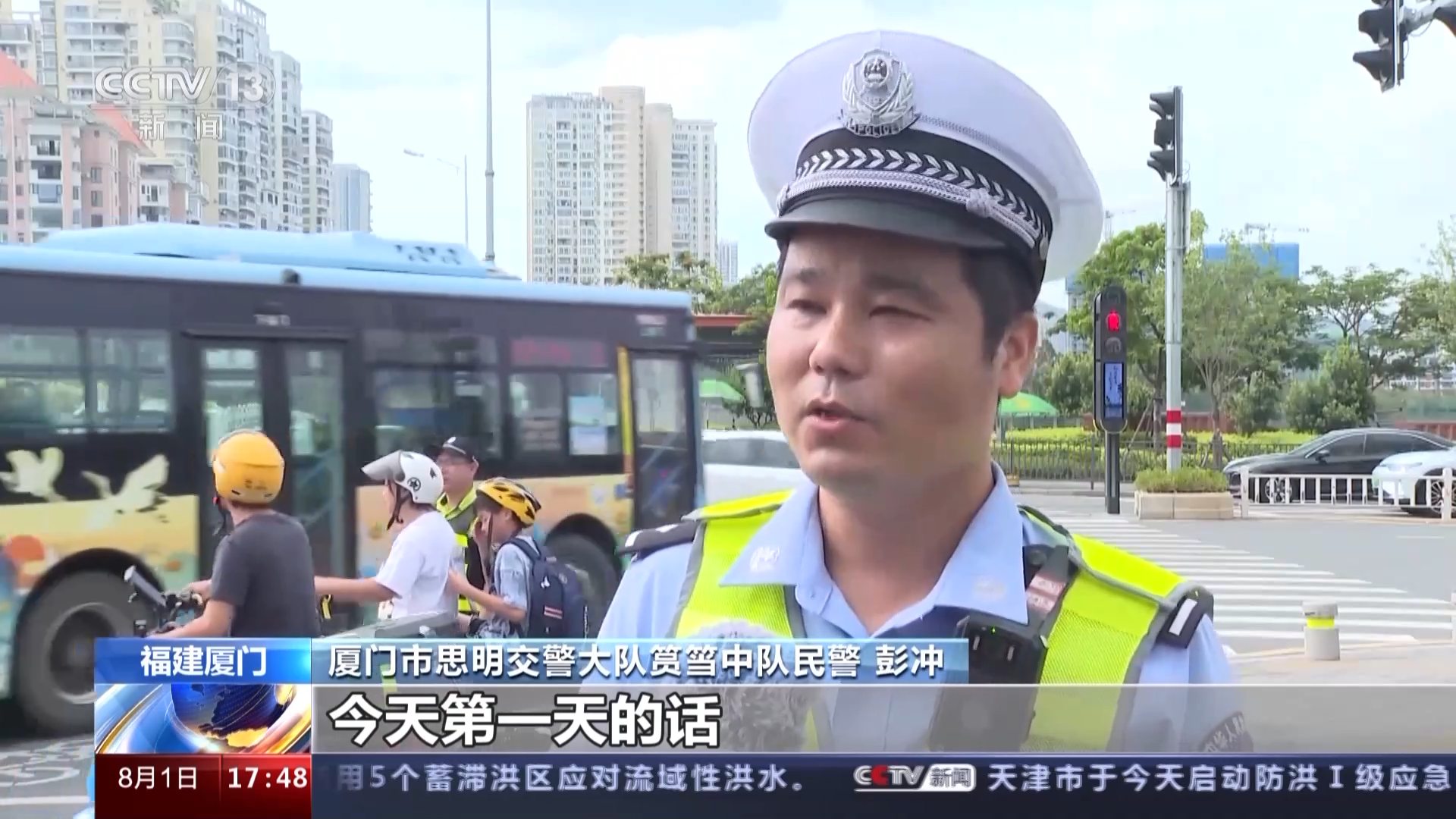 厦门市思明交警大队筼筜中队民警 彭冲:今天第一天主要是做一个宣教工作,跟我们交通参与者就是讲明白我们在斑马线行走,按规定行走的一个有益的方面,减少一个交通事故的方面,让大家更有意识地按照法规的条款通过斑马线。车让人、人守规,我们共同努力,让斑马线更加顺畅安全。
