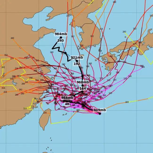 台风”卡努“路径预报。本文图片均为 上海天气发布 图