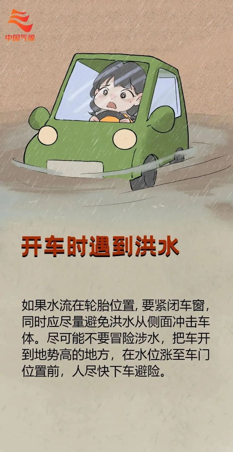 强降雨导致路面湿滑、能见度下降,公众出行需注意交通安全,驾车行驶中遇到强风雨,应尽快把车停在安全处,同时车上人员尽快撤离到安全地带,请勿涉水行车。
