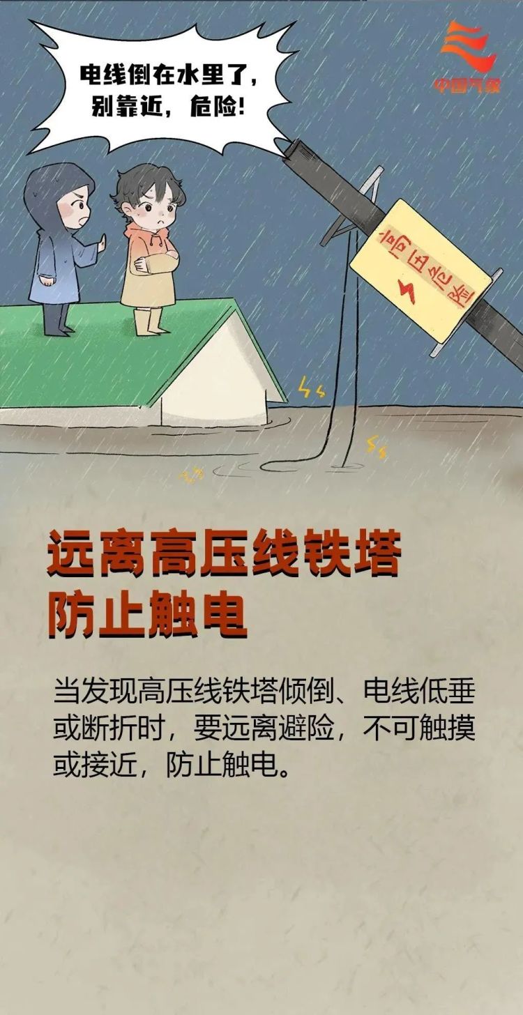 除了要远离高压线铁塔,防止触电外,还要离开被洪水冲击的桥梁,以免桥梁倒塌发生危险。