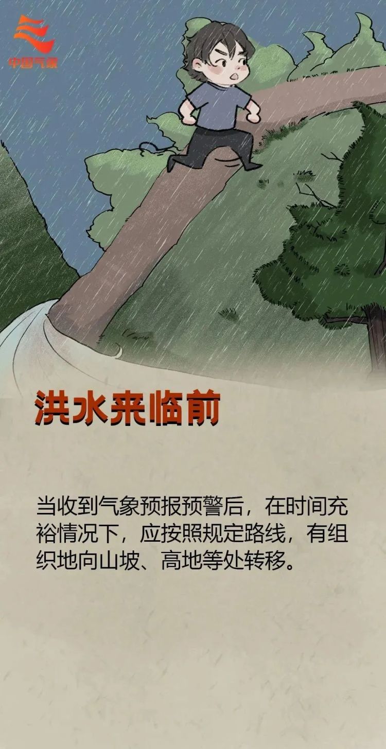 容易积蓄洪水的低洼地带和山谷出口处,再慌乱也不可强行过河。