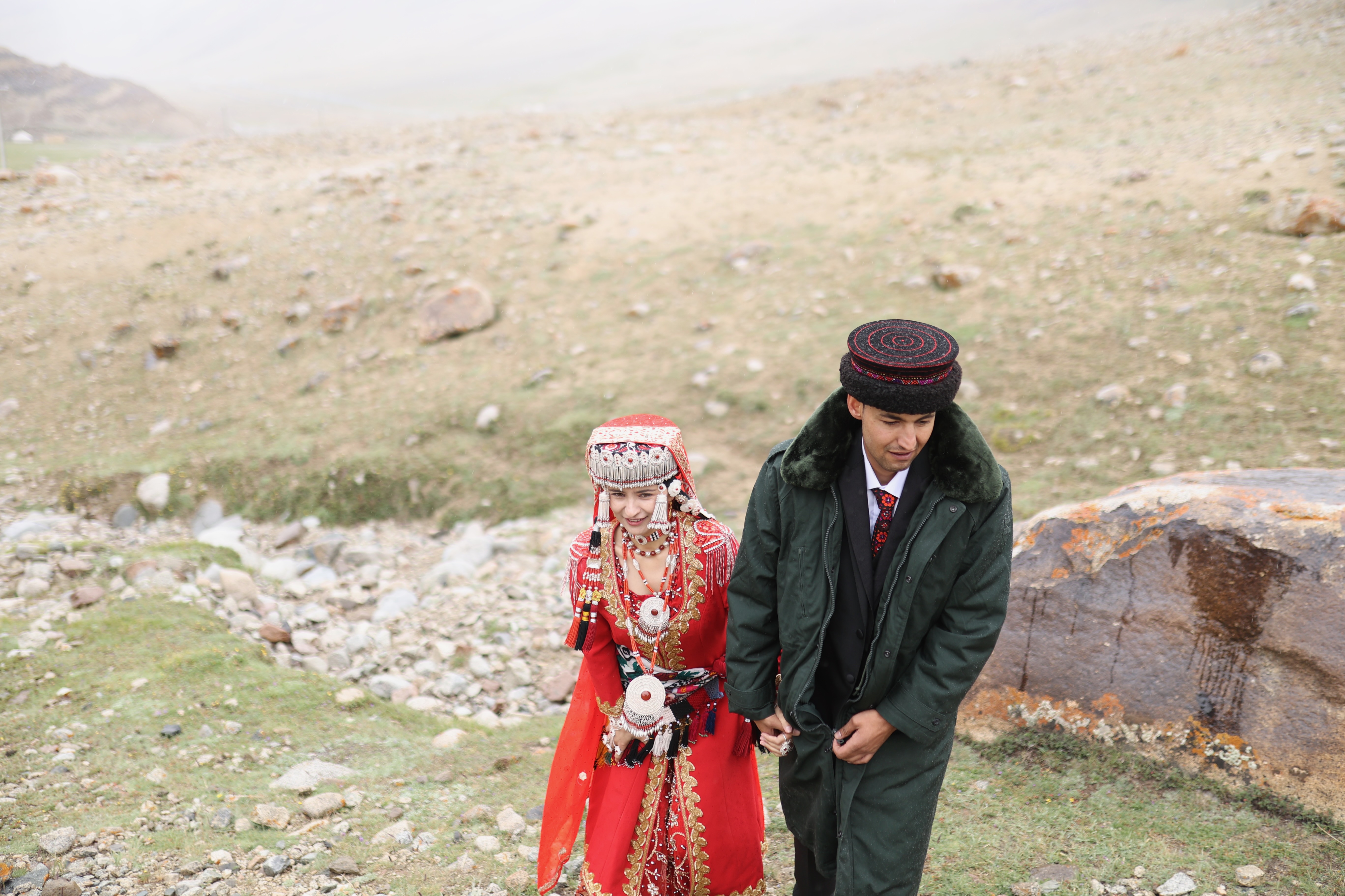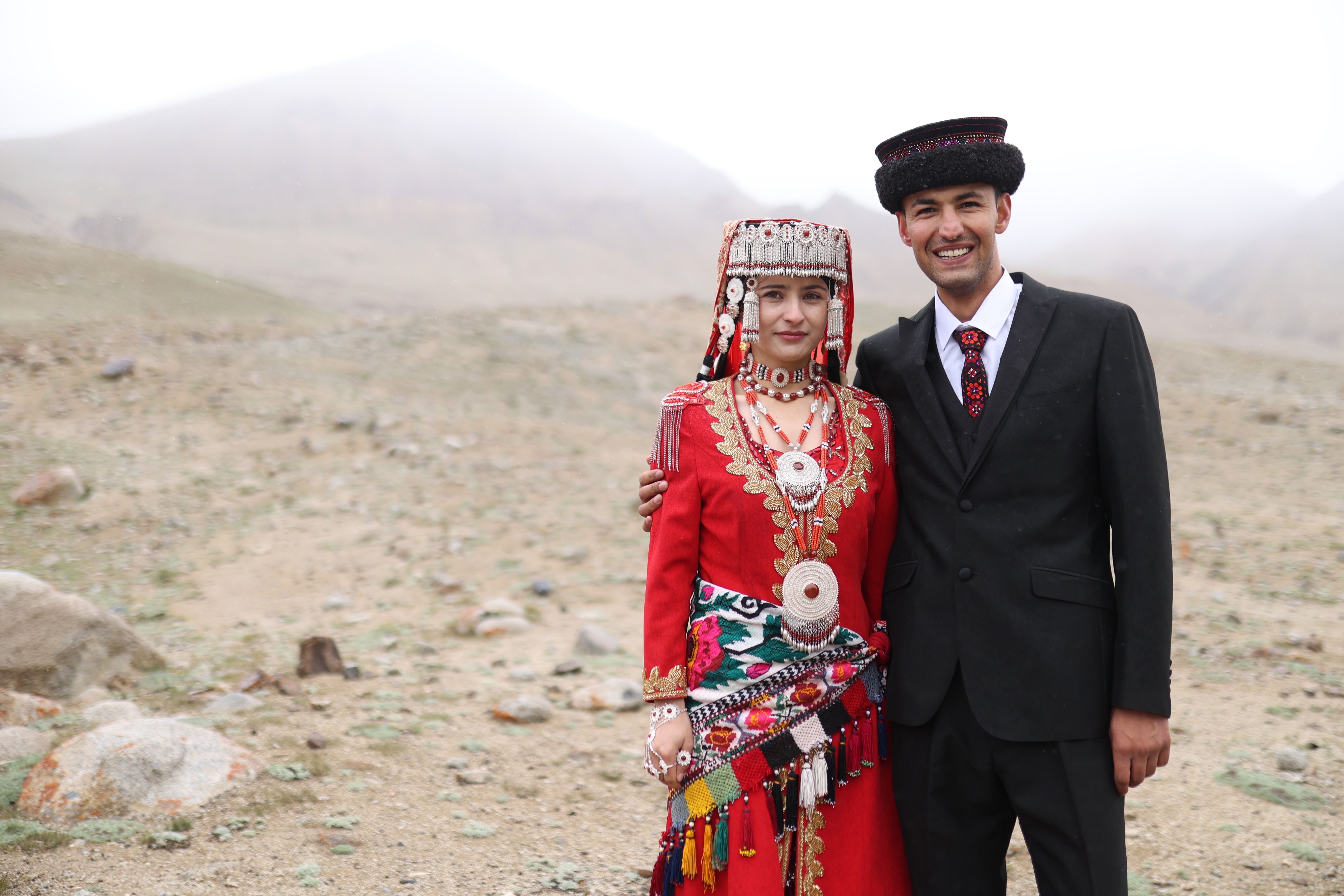 一对塔吉克族新人在“家训石”前完成特殊仪式