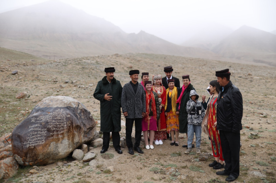 龙吉克是全国“最美退役军人”、全国模范退役军人、北京冬残奥会火炬手,他的侄子阿甫孜·加尔曼一周前刚结婚。这天,龙吉克带着阿甫孜夫妇及部分家人来到海拔4200米、位于中国和塔吉克斯坦边境地区的“家训石”旁庄严宣誓。阿甫孜告诉《环球时报》记者,在“家训石”旁宣誓已是四代护边的龙吉克家族的传统仪式。