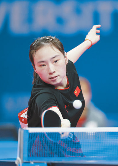 8月1日,中国大学生体育代表团选手王晓彤在乒乓球女子团体决赛中。