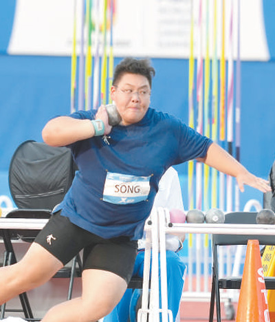 8月1日,中国大学生体育代表团选手宋佳媛在女子铅球决赛中。