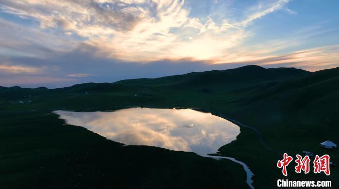 傍晚时分,湖面倒映着晚霞,更显静谧。李强 摄