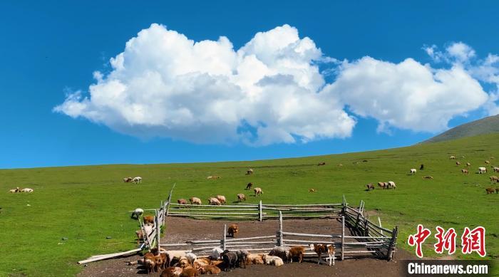8月初,新疆博尔塔拉蒙古自治州(以下简称“博州”)精河县的巴音阿门景区内山清水秀,风景宜人。巴音阿门,蒙古语意为“富裕的山坳”,位于博州精河县以南38公里处,海拔1600米至2000米。这里地表平坦开阔,水分、气温适宜。步入景区,山峦叠嶂,秀木成林,河水叮咚,牛羊低吟。蓝天、白云、高山、草原、绿林、碧湖融于一体,勾勒出一幅动人的夏日山水画卷。