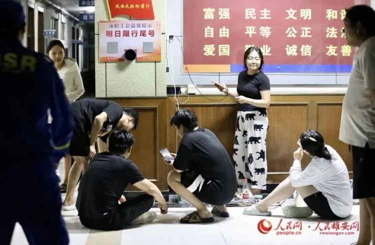 有网络消息显示,涿州全域停水、部分停电,但记者在涿州职教中心并无停水停电情况,且周边可见楼宇灯光,不过短时阵雨依旧不断,给夜间救援工作增加了难度。