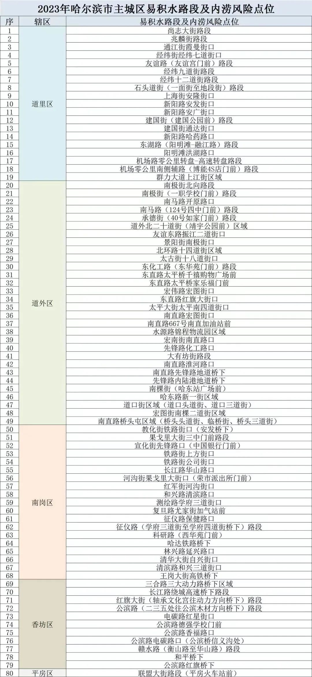 8月2日,哈尔滨水务发展集团发布哈尔滨市江南主城区在遇短时强降雨时,可能出现积水情况并影响通行的易积水路段及内涝风险点位,共计80处。其中,道里区19处、道外区30处、香坊区11处、南岗区19处,平房区1处。来源:哈尔滨水务集团