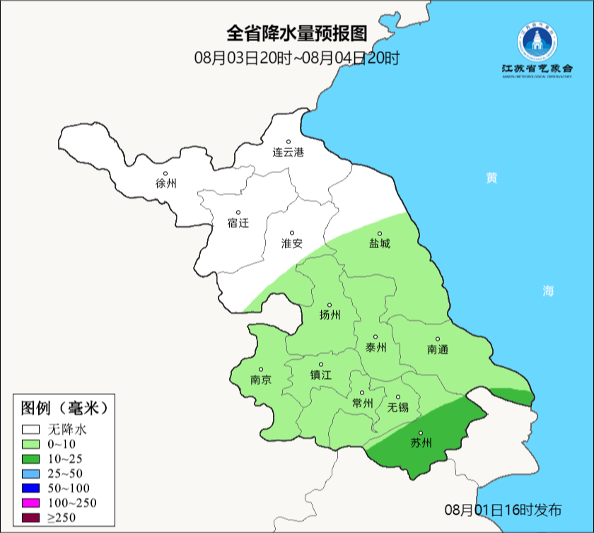 全省多云,其中江苏东南部地区有分散性阵雨或雷雨。最高温度:全省32~33℃;最低温度:江苏东南部地区26~27℃,其他地区25℃左右。全省偏东风4-5级。