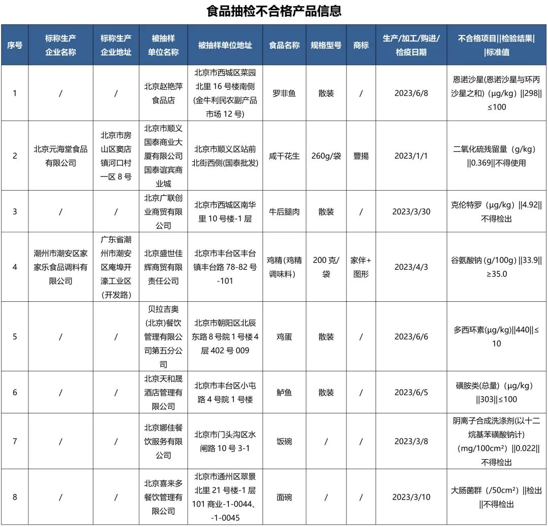 近日,北京市市场监管局发布了2023年第46期食品安全监督抽检信息公告。