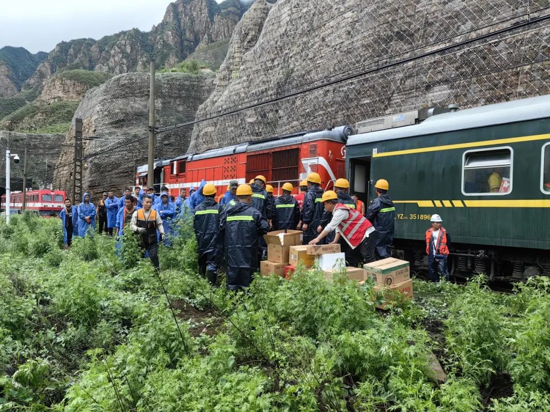 与此同时,张家口车务段火速集结6000份面包、八宝粥、火腿肠、矿泉水等救援物资并组织装车。7月31日20时56分,57402次物资运输列车从张家口站始发运往沿河城站。