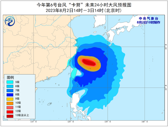 受“卡努”影响,今天到明天,巴士海峡、台湾以东洋面、东海及钓鱼岛附近海域以及长江口区、杭州湾、浙江沿海、福建北部沿海、台湾岛北部沿海将有6-8级、阵风9-10级的大风,其中东海及钓鱼岛附近海域风力可达9-12级、阵风13-14级,“卡努”中心经过的附近海域的风力有13-16级、阵风17级及以上。台湾岛北部有大雨。中央气象台今天继续发布台风蓝色预警和大风黄色预警。
