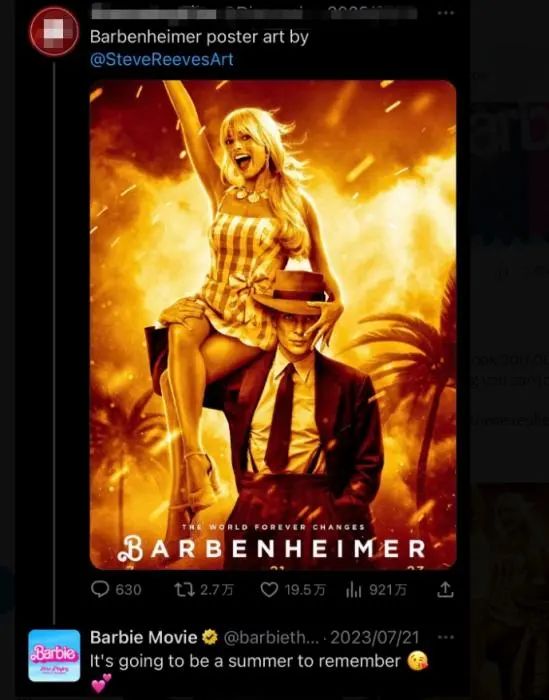 《芭比》电影的官方账号不光点赞,还回复称“这将是一个难忘的夏天”,并配上了飞吻和爱心的表情包。