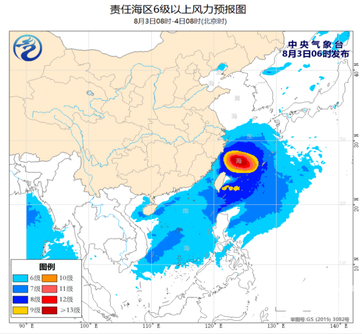 中央气象台8月3日06时继续发布台风蓝色预警:
