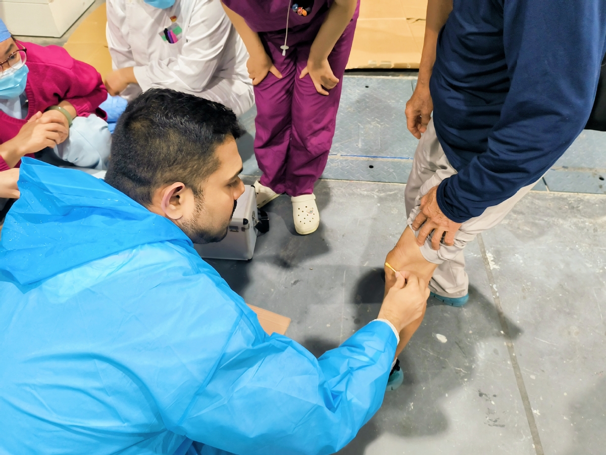 “中国人民群众虽然对医疗队伍中突然出现我这个‘外国医生’有些好奇,但却非常配合我的工作。” 7月31日, 孟加拉籍北京大学第一医院儿科医生周凯比(Dr. Nazmus Sakib)在新闻上得知北京暴雨致部分地区受灾,政府相关部门已安排人们转移至临时安置点,他立即决定赶赴现场,参与救援志愿活动。在首钢园安置点,他给病人清理伤口,包扎伤口,安抚心急的群众......与整个医疗团队的配合十分默契。“不仅如此,大家还很关心我。他们看到我一直忙碌,都递上水让我歇一歇,还会问我是否吃了晚饭。” 周凯比说。