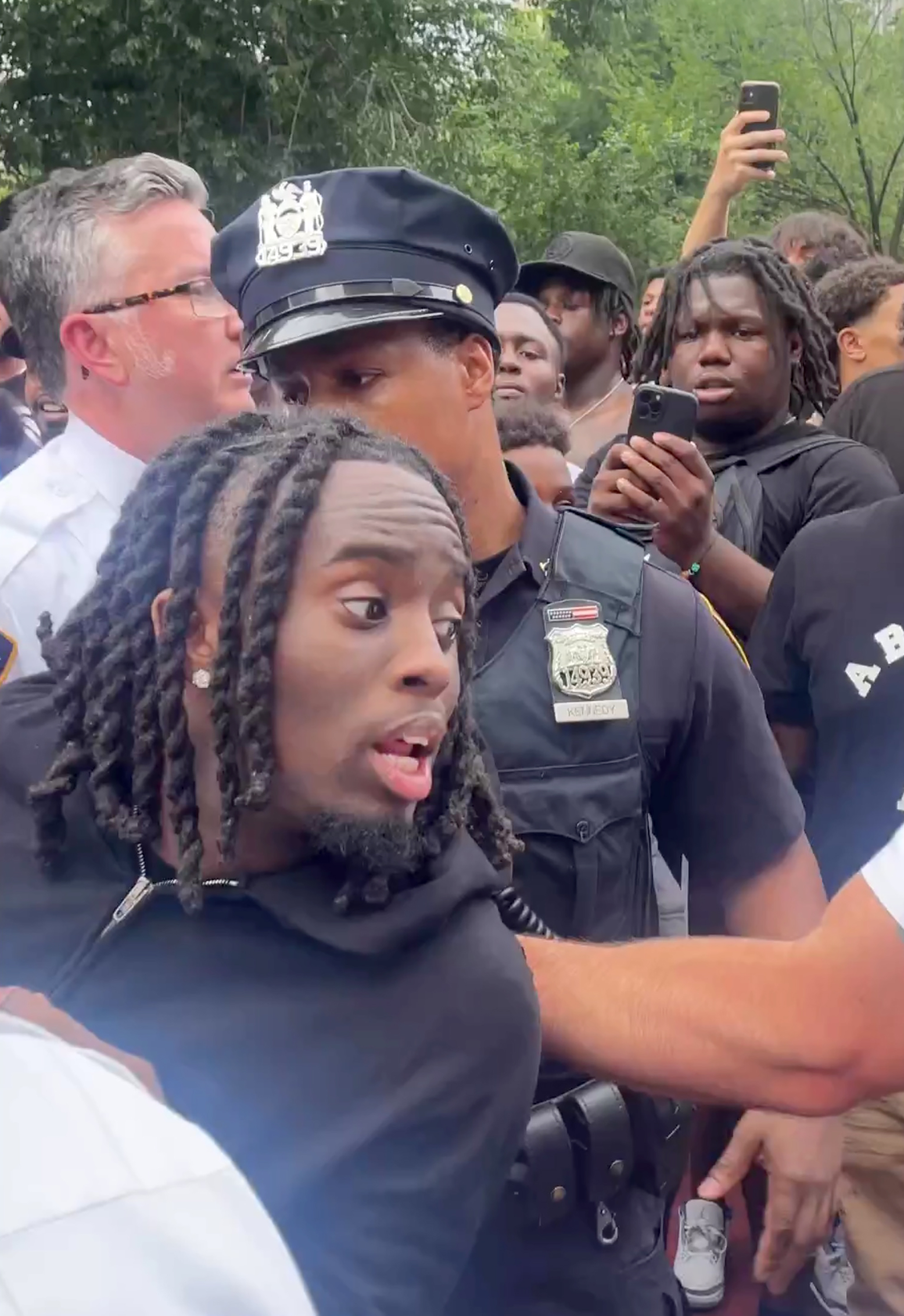 报道称,马德雷称,随着集会人数增加,部署的警力也随之增加,公园里的一些人开始对警察和其他群众实施暴力行为。一些人冲进附近一个建筑工地,开始投掷建筑设备、罐子、瓶子、石块等,“有人拿着铁铲、斧头和其他建筑工具走来走去。此外,还有人把烟花扔向警察,也互相扔烟花”。他表示,警方对人群实施多次警告无果,在遭到袭击,被用石块、瓶子和其他物品投掷后,警方开始实施逮捕。65人被拘捕,其中30人是青少年。有几名警察受伤。马德雷说他自己也被物体击中。