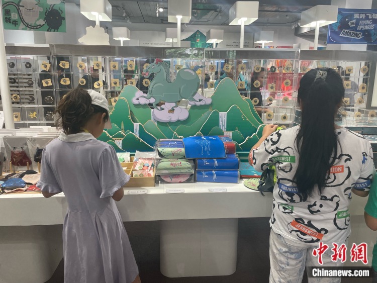当天,文创商店挤满了游客,记者发现部分热门商品已经售罄,忙碌的职员们不停地补货。在兰州读大学的小郎趁着放暑假的空档,现在甘肃省博物馆文创商店打暑期工。她说,玩偶类商品和丝路寻宝的盲盒更受小朋友喜爱。